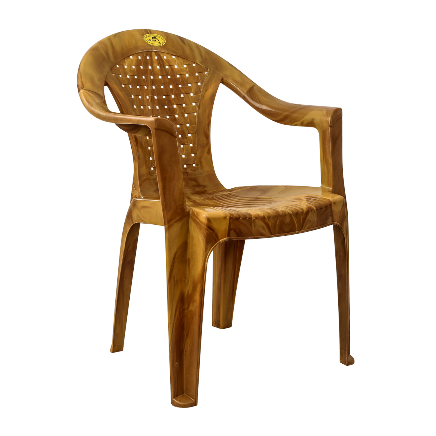 Bubble Mat design in back insert chair Extra wide arm rest and specially design back for ultimate comfort Stackable and portable chair Primary plastic material and gas injection molded Technology